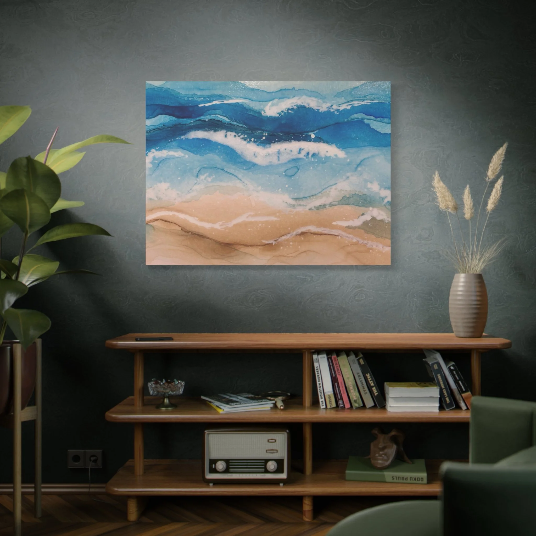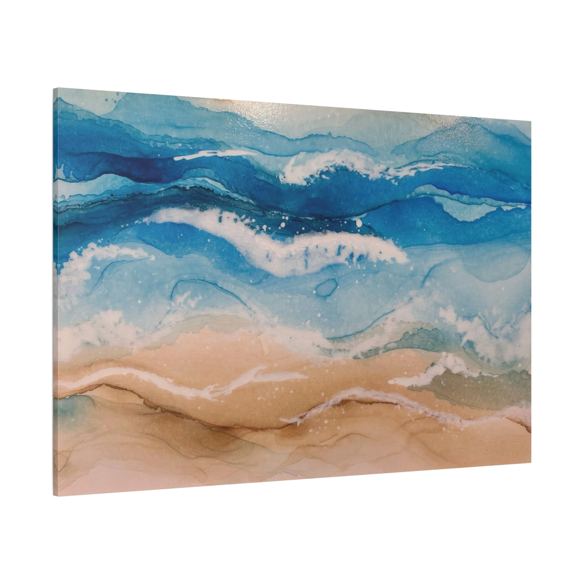 Waves rise and fall in a steady rhythm, echoing the flow of breath and the cycles of renewal. Shades of blue and sand intertwine, grounding the spirit while inviting the mind to release into calm. This piece reminds us of the ocean’s gift of energy, balance, and restoration.